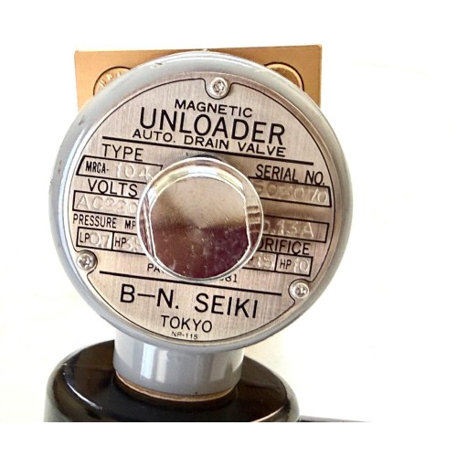 Is your vessel's air compressor struggling with "milky oil" or failing to start under pressure? The B-N Seiki MRCA-104 is the industry-standard solution for high-pressure marine air systems. This dual-function valve acts as both a magnetic unloader and an automatic drain, ensuring your engine room stays efficient and moisture-free.